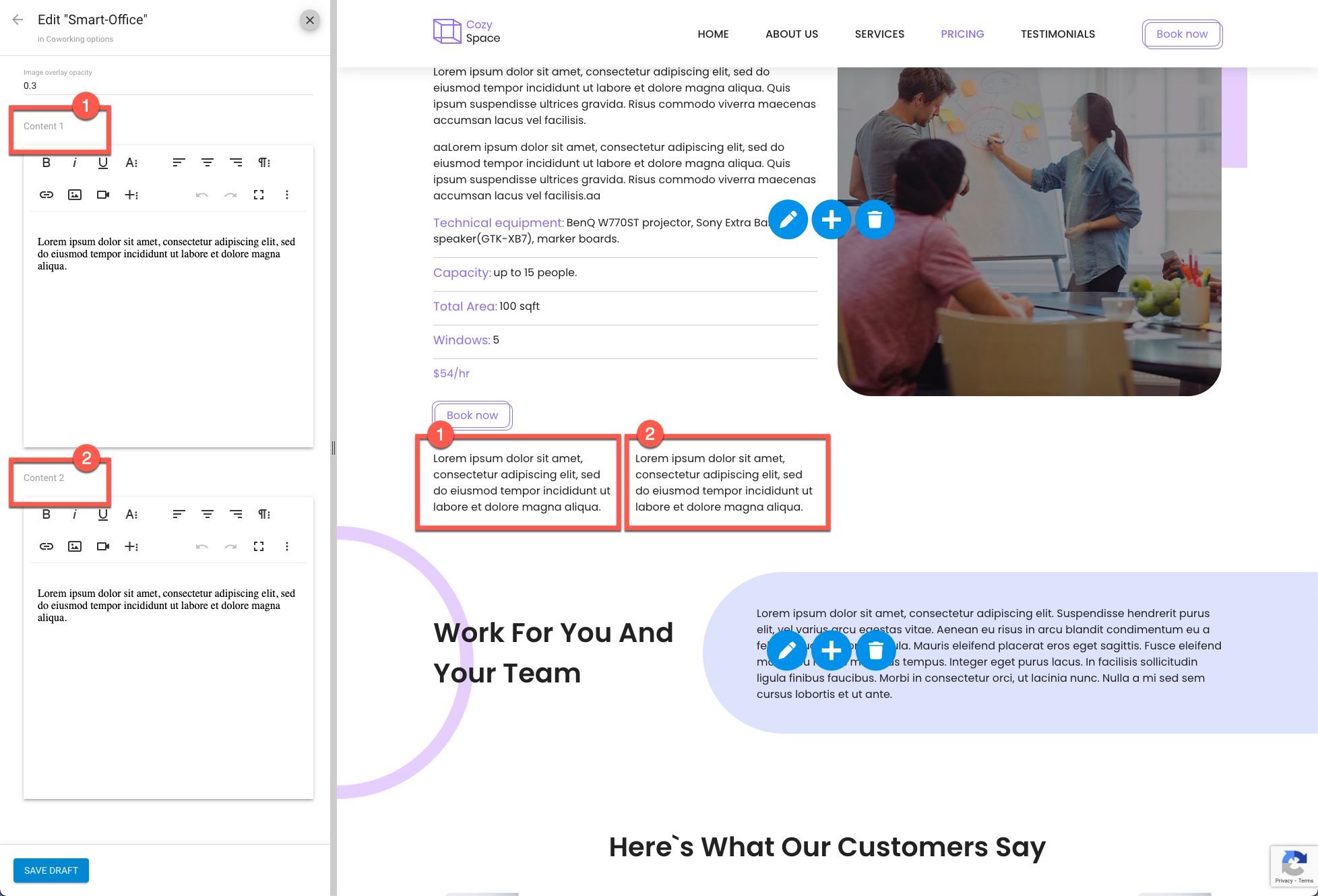 So, we can wrap the 2 column's content with the data attribute to split it into 2 separate editable regions when using the OSE Pro edit mode.
