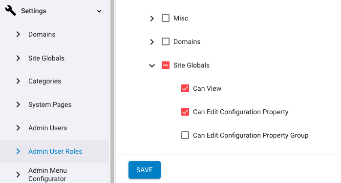 For example, to allow Site Global to be edited within an Admin User Role configuration: