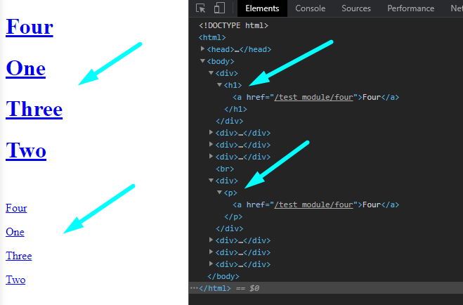 In the browser then we can see the two module insertions are different.