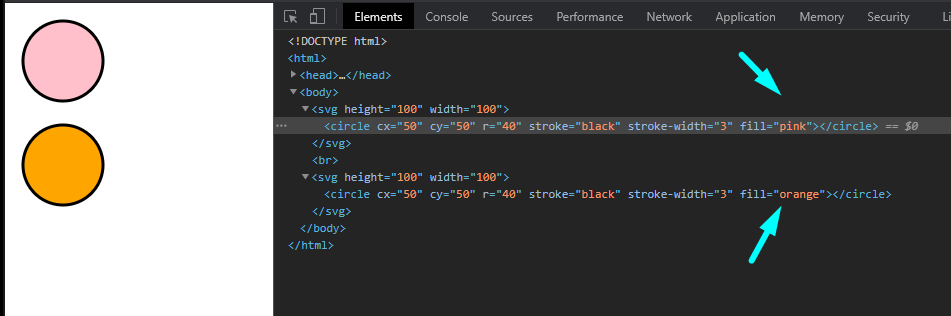 Then in our snippet we call the custom parameter fillColour, and we get the value of pink or orange for the fill of our circle.