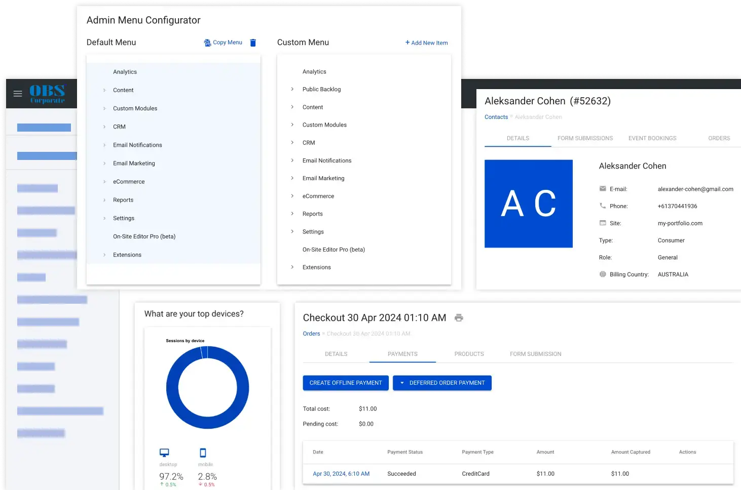 From content management and eCommerce to CRM and marketing automation, OBS Platform consolidates all essential tools in one place. Say goodbye to juggling multiple systems—OBS integrates everything you need for digital success.